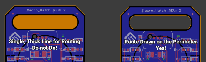 - Minimal route for internal cutouts and plates is 27mils (0.7mm) in width
