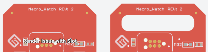 Some EDA tools (Notably KiCad) will place plated slots and routes in the Excellon Drill File. This is known as the G85 drill command. MacroFab currently does not support this method to designate plated slots and routes. In the PCB Design Viewer a slot drawn in this manner will show up as two drill hits without a slot in between them. It is necessary to redraw the slot in a way that the EDA tool will export the slot as a feature of the border layer.
