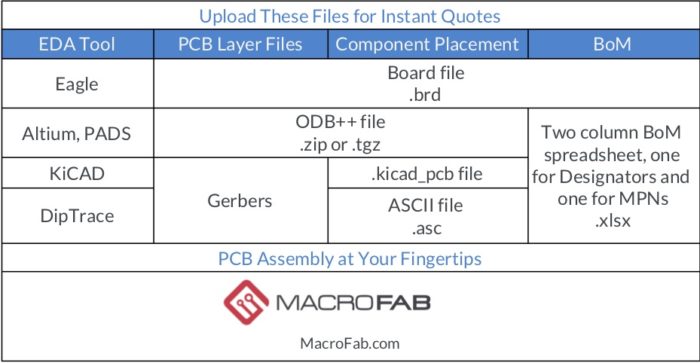 The first step in getting a real-time quote is to collect and upload the design files and manufacturing data for your PCB design. For some EDA software packages, the platform can automatically extract everything from your original design files. For other tools, we can use a combination of design files, Gerber files, or ODB++ packages. Here are some helpful articles that will make it easier to get started: