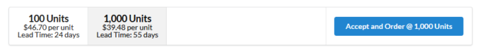 After accepting, the key details of the manufacturing service agreement are presented. Here you can review the per-unit costs, payment terms, and minimum order quantities that will be included in the manufacturing service agreement.