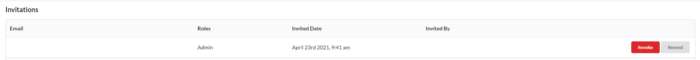 An invitation can be revoked from the Organization Admin page by clicking the Revoke button. If the invite is resent, the original invitation email will be resent to the invitee.