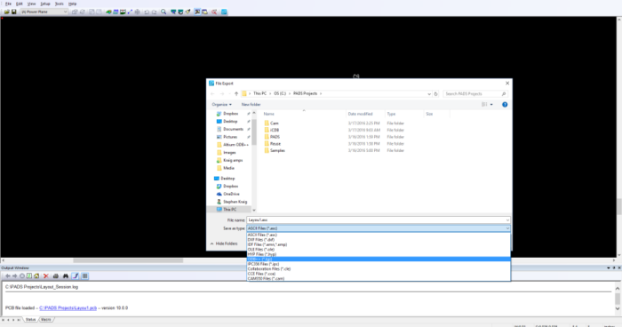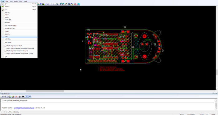 Before exporting the files, the correct layers must be defined in the PADS CAM processor. You can access the CAM processor from File -> CAM.