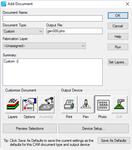 Under the Document Type pull down list select the option that represents the layer that you are going to add. In the case of the Power Plane layer we will select custom.