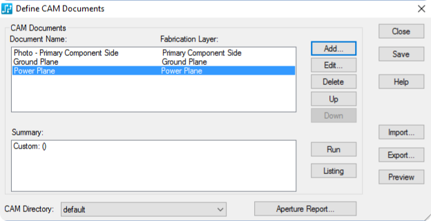 Press OK to add the document to the CAM processor. In the image below you can now see that the Power Plane layer has been added to the list of layers that will be output when generating the ODB++ files.