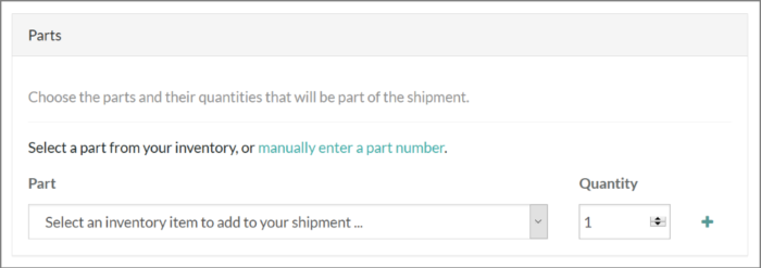 If the item you want to send in doesn’t exist as part of your inventory yet, you can use the manually enter part number link to input a part number or SKU for the item, and a record will be added to your inventory as a regular inventory item.
